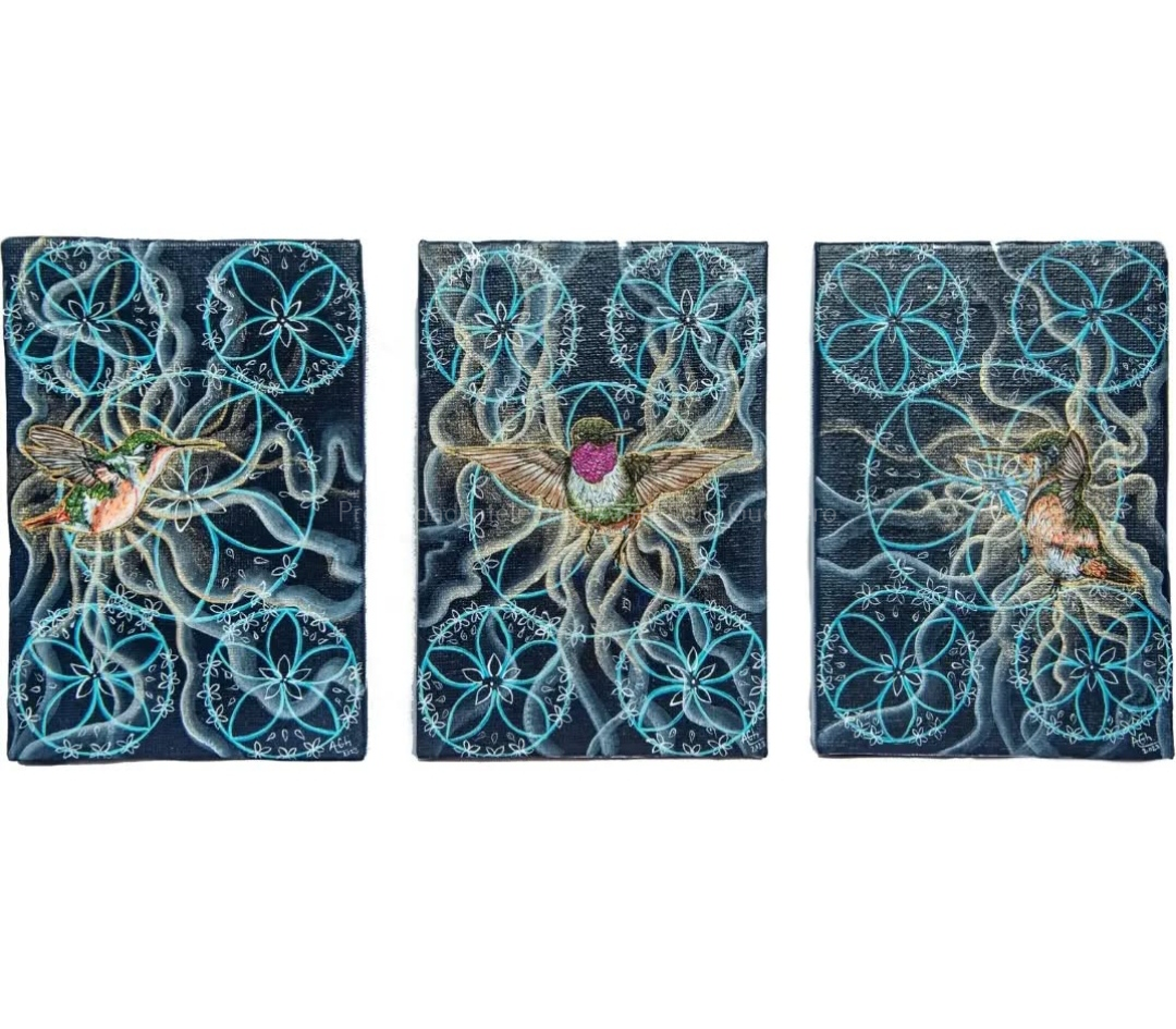 La expresión botánica en las obras es producto del proceso de sanación propio, donde observar es la clave, contemplar para recordar. Observar, leer, escribir, pintar y cantar para comprender las metáforas que nos entregan lo espiritual y natural, para transformar por dentro y fuera de sí mismos..