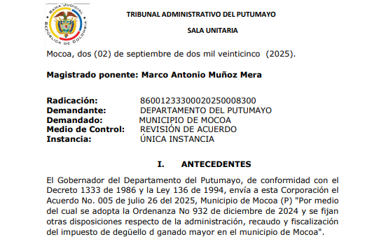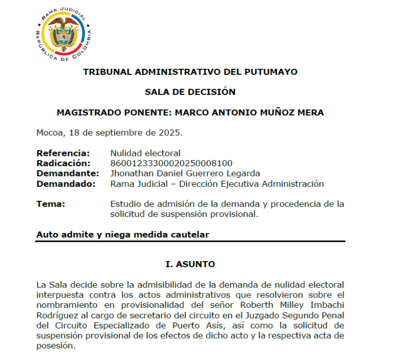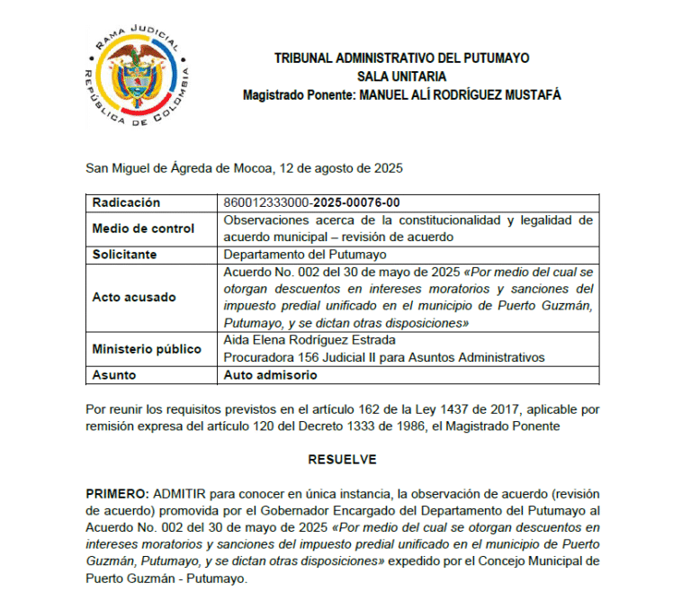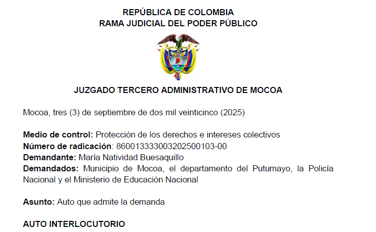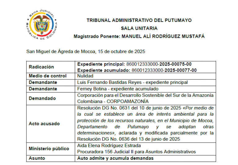 Comunicados, Tribunal Administrativo del PutumayoProcedencia consulta previa pueblos étnicosSantiago Ernesto Narvaez De Los Riosoctubre 9, 2024